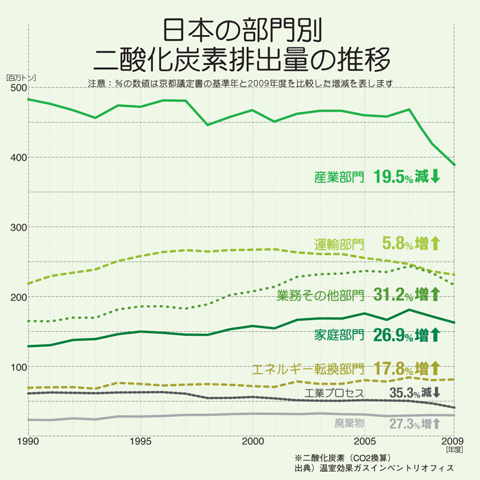 まるで産業部門が全然努力してないのに家庭が被害をこうむってると思ってるようだが